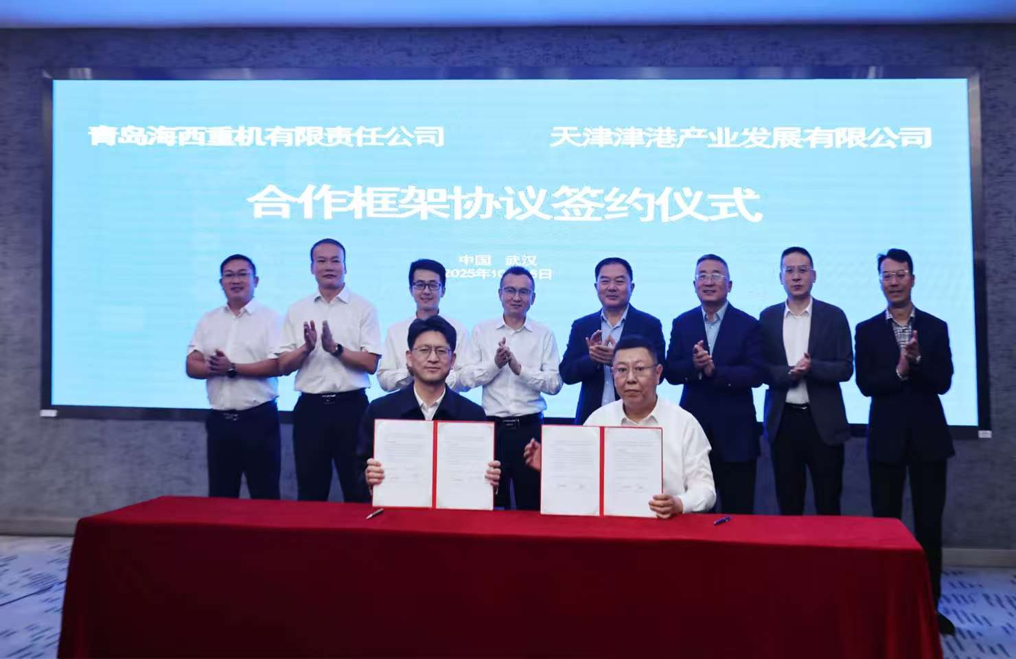 10月15日,中船集團(tuán)武漢船機(jī)黨委副書記、總經(jīng)理程立兵會(huì)見天津港(集團(tuán))有限公司黨委副書記、總裁焦廣軍一行,并共同見證青島海西重機(jī)有限責(zé)任公司與天津津港產(chǎn)業(yè)發(fā)展有限公司簽署合作框架協(xié)議。武漢船機(jī)副總經(jīng)理程文池、總經(jīng)理助理溫青富、天津港集團(tuán)副總裁安國利參與會(huì)見。